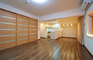 床材をカーペットから木目の美しいフローリングへ。落ち着いた印象の空間に