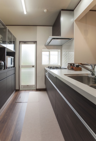 元は低い位置まであった垂れ壁があり、暗いイメージでしたが、使っていない吊り棚を撤去し、垂れ壁も削って開放的に。