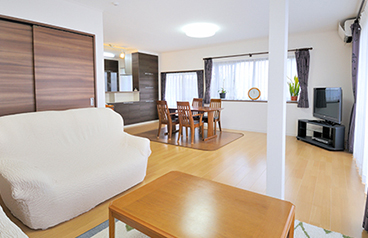 L字型の広いLDK空間で家族団らん