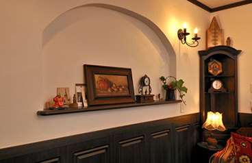 壁厚を利用したアーチ型棚