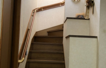 足腰が弱くなったお母様の為に、安全性と快適性を考えた階段手摺を設置。